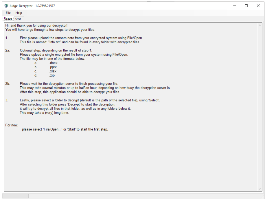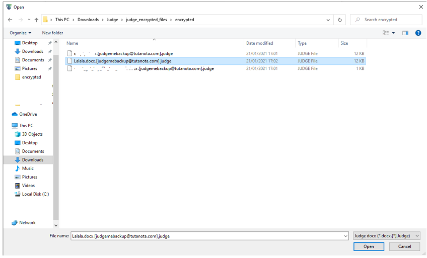 转到“下载”文件夹,然后双击Judge-Decryptor.exe