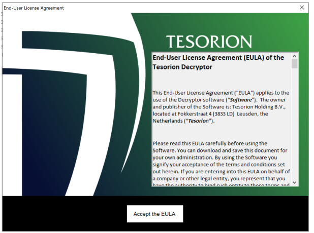 要接受最终用户许可协议,请单击“接受 EULA”按钮。