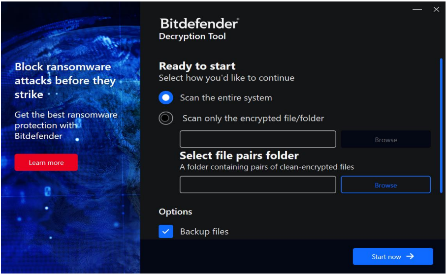 BDLockerGogaDecryptTool.exe start -full-scan -replace-existing ->该工具将扫描整个系统并覆盖呈现的干净文件