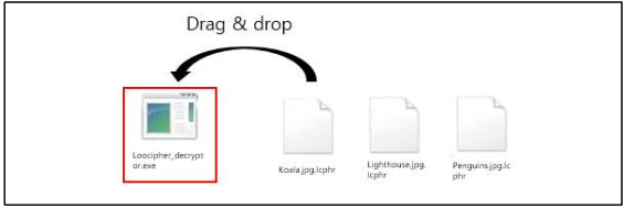 - 将受感染的文件拖放到解密工具(LooCipher_decryptor.exe)图标上。