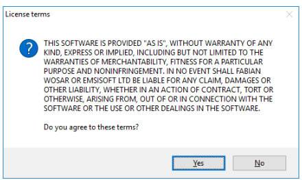 - 接下来将显示许可条款,您必须通过单击“是”按钮来同意这些条款: