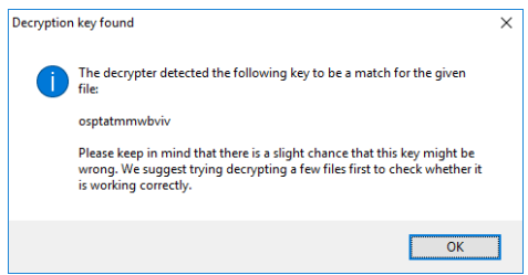 - 解密器将在恢复过程完成后显示重构的加密细节。这个显示是为了确认所需的加密细节已被找到,纯粹是信息性的: