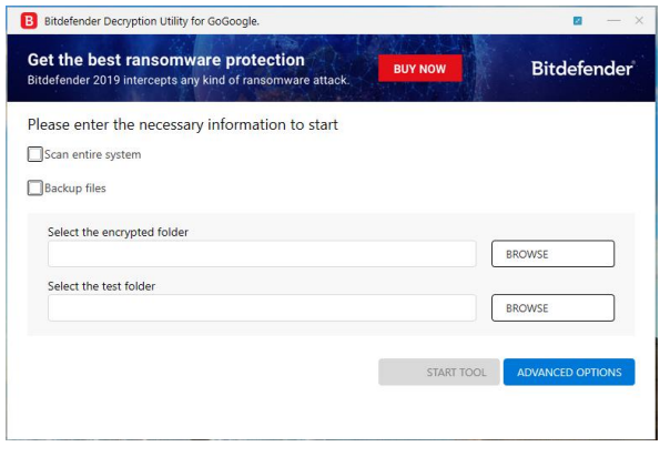 BDGoGoogleDecryptor.exe start o0:1 o1:1 o2:1->该工具将扫描整个系统,备份加密文件并覆盖现有的干净文件