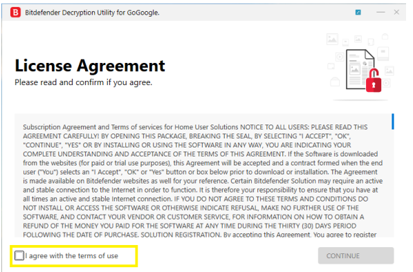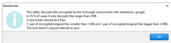 - 双击文件(以前另存为 BDGoGoogleDecryptor.exe)并通过在 UAC 警报上单击“是”来允许其运行。