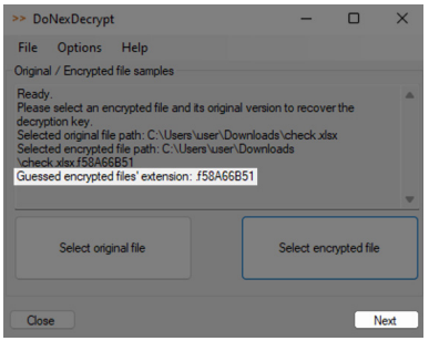 9. 一旦密钥被恢复,解密器将猜测加密文件的扩展名,并且“下一步”按钮将可用,以便继续进入解密屏界面: