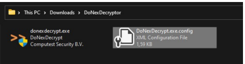 2. 解压下载的文件,您应该在解压后的文件列表中找到解密器程序DoNexDecrypt.exe: